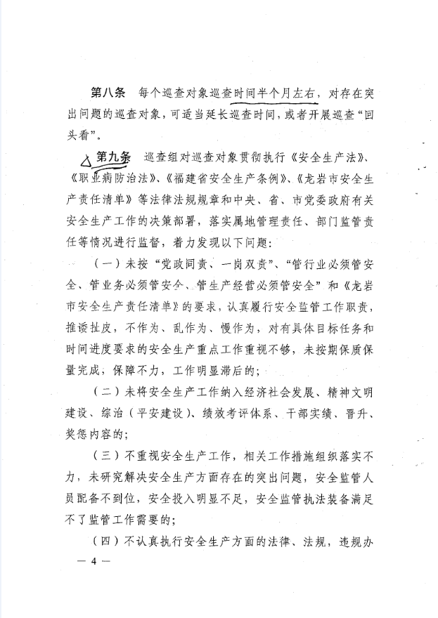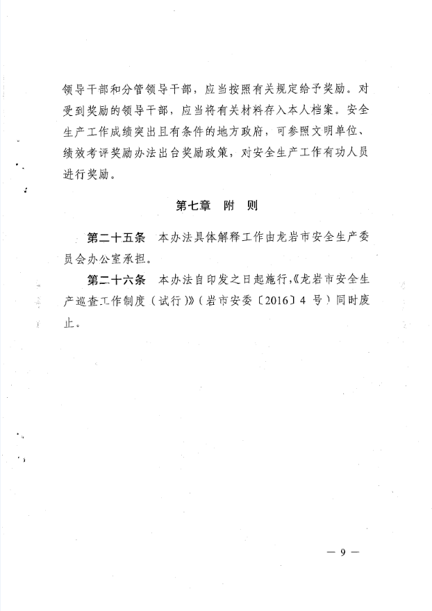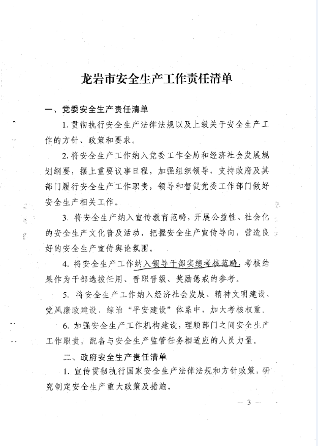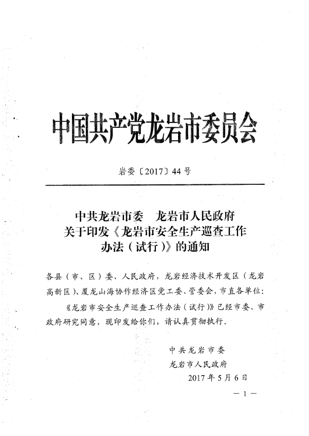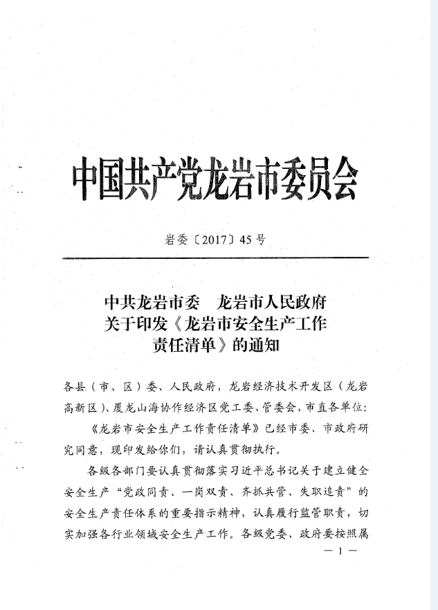 龍巖市安全生產(chǎn)責任清單及安全生產(chǎn)巡查工作辦法(巖委【2017】45)