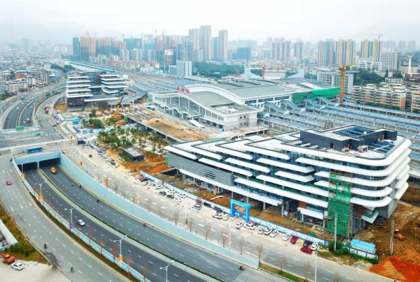 11月20日,龍巖火車站各項目進入完工倒計時。目前,龍巖火車站13條軌道已全部開通,8—13道目前正在開展拉通試驗,預計本月27日左右結(jié)束。屆時南龍鐵路全線將進入空載試運行階段。同時,站前高架橋完成樁基、承臺、A和B匝道鋼梁吊裝、主橋站前廣場東側(cè)鋼梁吊裝等施工,計劃12月底建成通車。位于廣場兩側(cè)的龍巖汽車樞紐、龍巖公交樞紐也計劃于12月完工并投入使用。